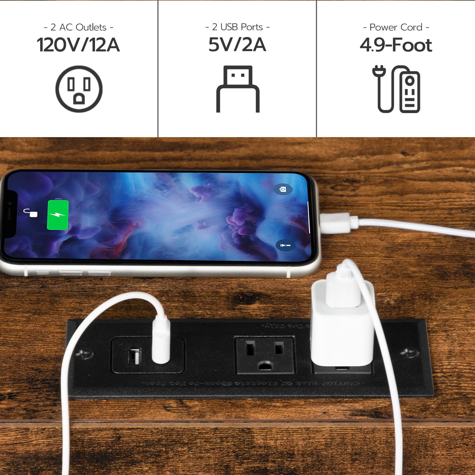 • End Table with Charging Station, Bedside Table with 2 Drawer & USB Ports & Power Outlets5
